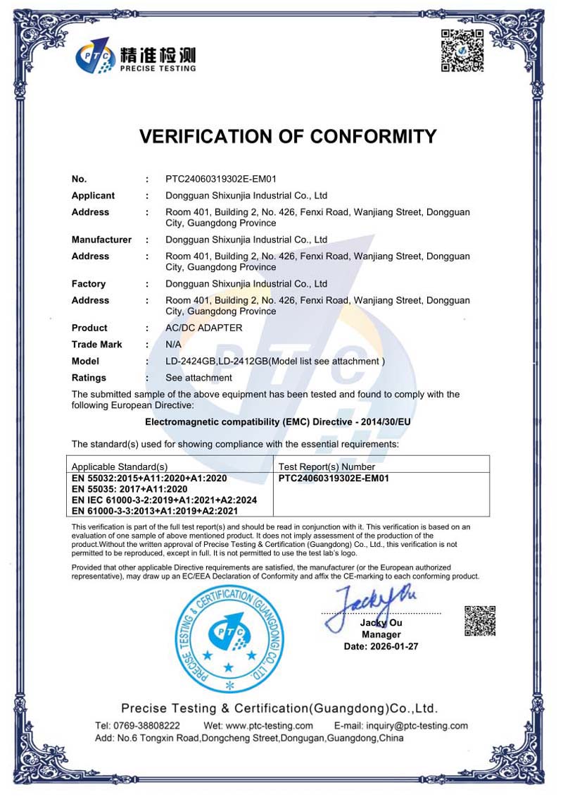热烈祝贺绿电GB GS直插式电源适配器通过CE FCC认证