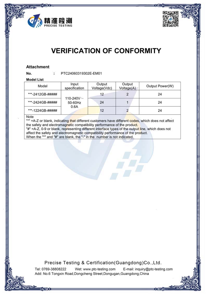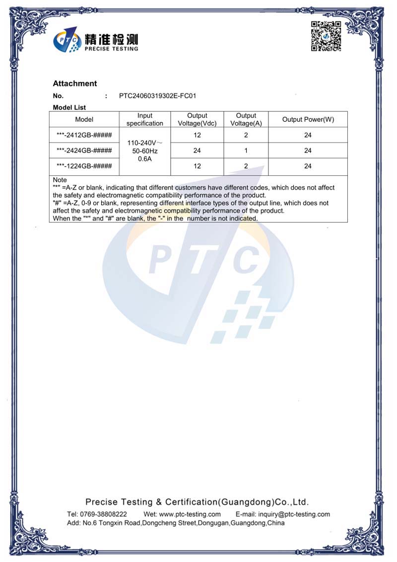 四、绿电24W GB直插式电源适配器CE FCC证书;