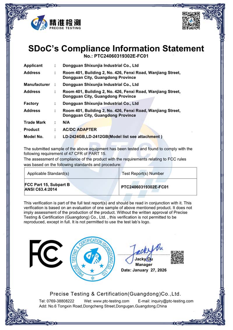 随着绿电直插式电源适配器CE FCC认证的顺利通过,标志着视讯佳公司在产品的安全性,质量水平及管理流程等都达到了国际标准的要求,其产品也获得了畅销世界的通行证,这不仅保证了社会大众的消费权益,更是对终端用户提供更为安全的保障,作为专业电源制造商,视讯佳公司将会更加自信的带领团队,在开关电源行业不断向规范化和标准化方向发展,为电源的发展做出积极贡献。